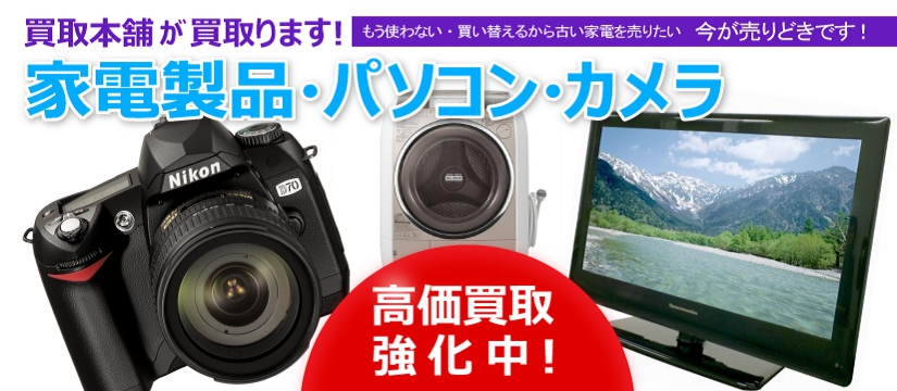 もちろん電話・お見積り・出張費すべて無料! 家電家具はもちろん電動工具、楽器、厨房機器、オーディオ機器、オフィス家具から、特殊工具、車両、重機、金・プラチナ、宝石、貴金属、ブランドバック、洋服、古着、着物、バイク、骨董品、お酒にいたるまで再販できるものならなんでも買い取ります。
